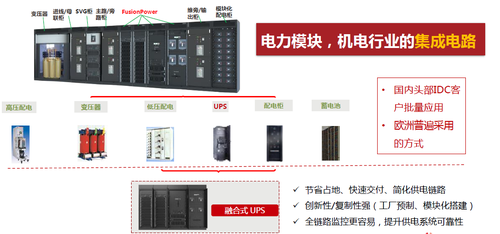 同时,我们的设备都是在工厂预装、预调试。将工程交给了工厂,将盒子化的产品交给客户。标准化产品,杜绝了现场的工程交付。1个机房建成,其他机房直接复制即可。• 4小时搭建,2天业务上线,节省安装费用6400元/套搭建也比较简单:FusionModule800采用冷电控一体化预集成的设计理念,一体化集成ATS/配电、UPS、监控模块、机架式温控在一个机柜内,现场安装仅需4个小时,考虑工程桥架安装及温控保研,2天就能够实现业务上线。所以FusionModule800提供的是一站式交钥匙工程。